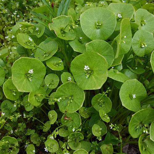 Claytonia perfoliataWinterportulak, Winterpostelein, Gewöhnliches Tellerkraut, Kuba-Spinat