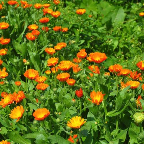 Calendula officinalisGoldblume, Regenblume, Ringelrose, Goldrose, Marienrose, Morgenröte, Kalenderblume, Kringelblume, Sinnringel, Gelringel