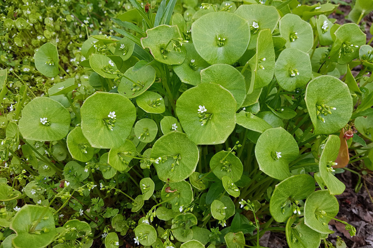Wer mitten im Winter frischen Salat aus dem eigenen Garten möchte, kommt an Postelein kaum vorbei. Während die meisten Gemüsebeete im November längst geräumt sind, legt diese kleine Pflanze erst richtig los. Sie wächst genau dann, wenn sonst fast nichts mehr wächst, und liefert bis ins Frühjahr hinein zartes, mildes Grün. Ursprünglich kommt Postelein von der nordamerikanischen Westküste. Dort war er bei den indigenen Völkern als Nahrungspflanze bekannt, bevor er über Umwege nach Europa gelangte. Mittlerweile hat er sich hier so gut eingelebt, dass er stellenweise verwildert vorkommt. Mit seinen 15 bis 30 cm Höhe bleibt er kompakt. Aus einer flachen Blattrosette wachsen fleischige, saftig grüne Blätter auf langen Stielen. Ganz oben an der Pflanze passiert etwas Besonderes: Zwei Blätter verwachsen dort zu einem runden Teller, durch den der Blütenstängel scheinbar hindurchsticht. Dieses Merkmal macht ihn unverwechselbar und erklärt den Namen Tellerkraut. Trotz der Namensähnlichkeit hat Postelein mit dem Sommerportulak nichts gemein. Postelein gehört zu den Quellkrautgewächsen, der Sommerportulak zu einer ganz anderen Pflanzenfamilie. Auch optisch sehen sie völlig verschieden aus.